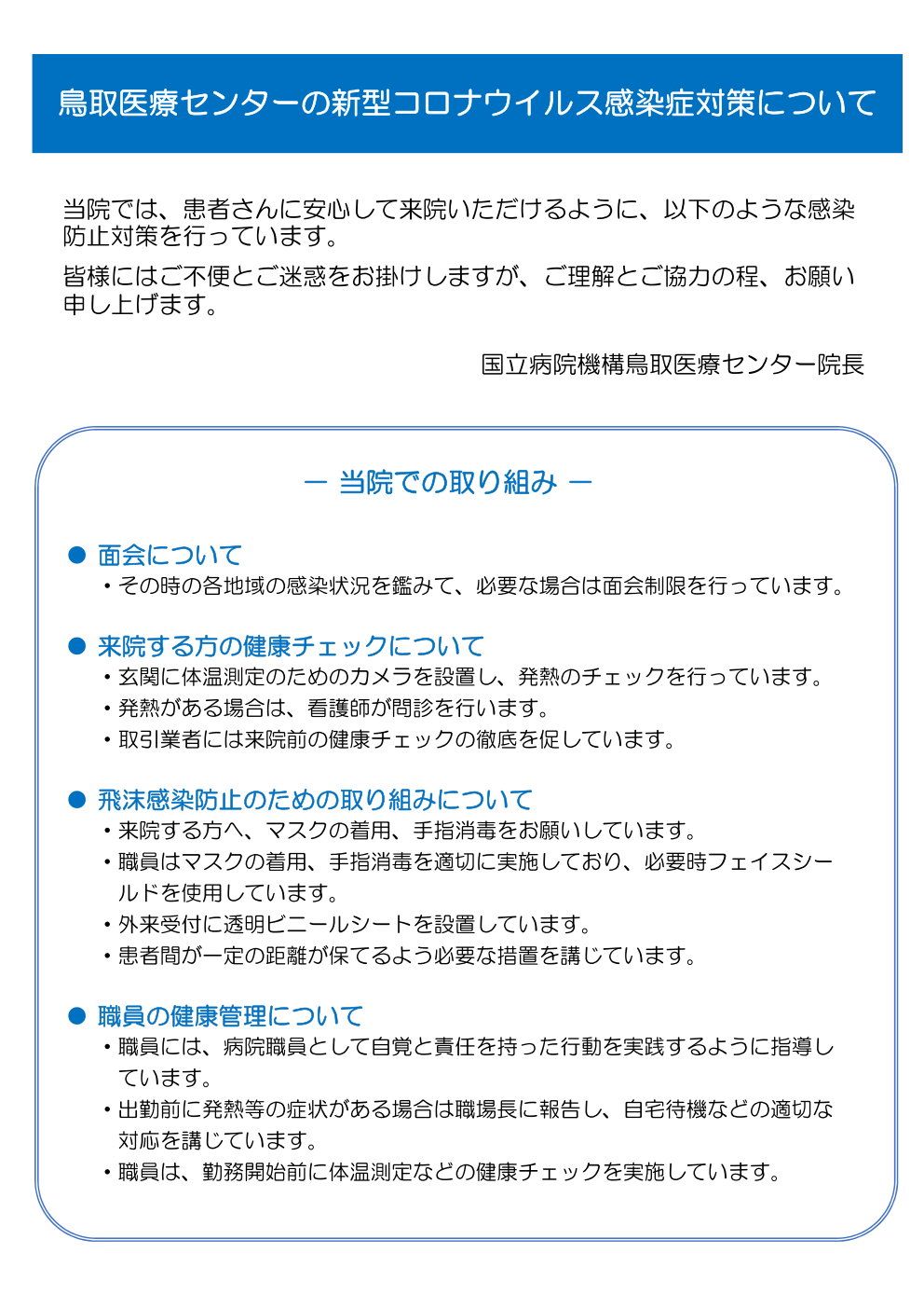 鳥取医療センターの新型コロナウイルス感染症対策について