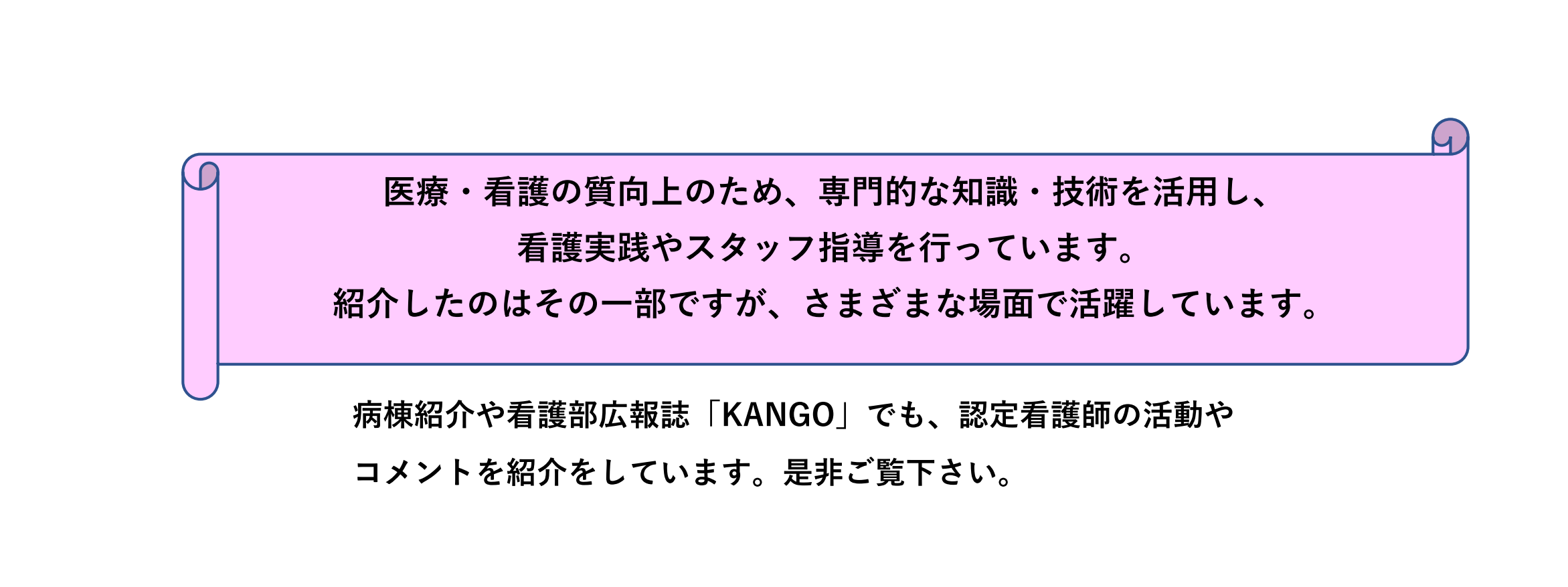 〇認定看護師とは、ある特定の看護分野において熟練した看護技術と知識を有する者として、