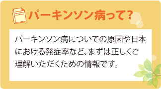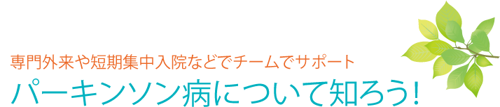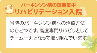 鳥取医療センターのリハビリテーション科は、パーキンソン病の治療に力を入れています。パーキンソン病は体がこわばる、話しにくいなどの症状により日常生活が送りにくくなります。 当院では、症状の軽い段階からのリハビリテーションと適切な薬物療法を併用する事によって、将来的に良い状態が長く続くことを目標に医師・スタッフと共に患者さんと一緒に取り組んでいきます。